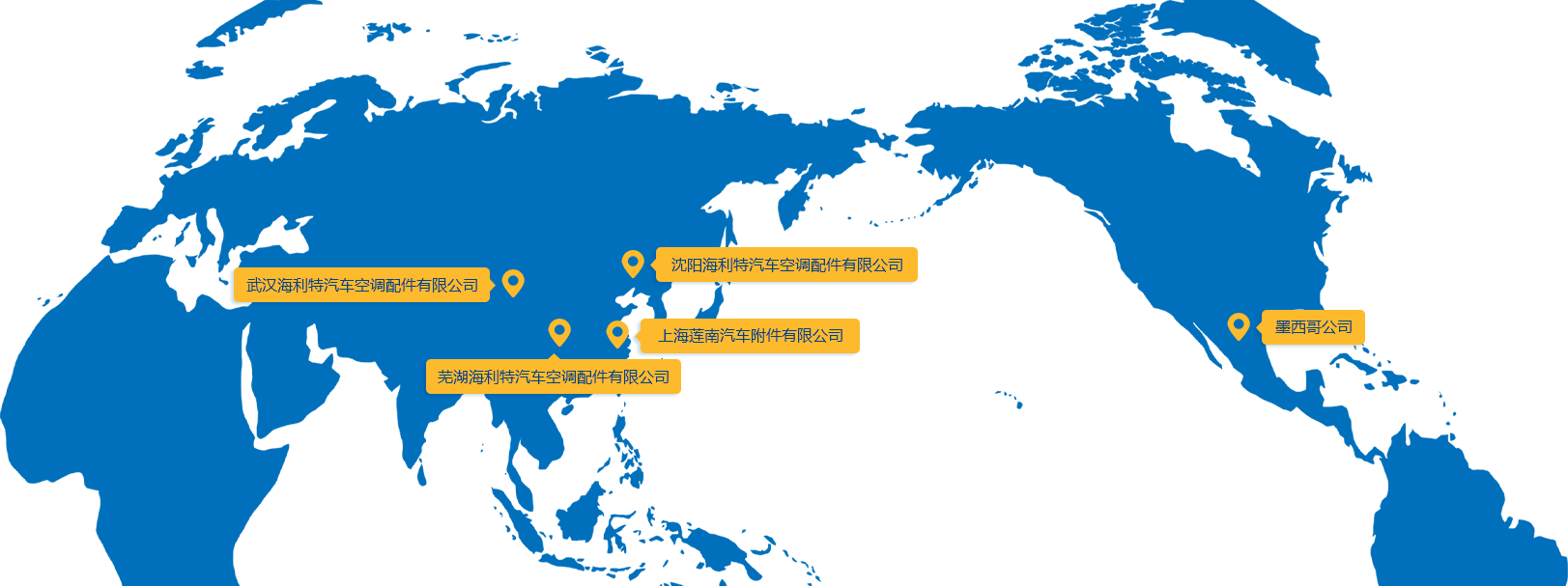 客户涵盖了中国、北美、欧洲、日本等国家主要的汽车生产企业。成立于2010年的沈阳海利特汽车空调配件有限公司,坐落于沈北通用汽车产业园,占地17000平方米,厂房面积12000平方米。注册资金4000万元。实现当年投产当年盈利。年产值1.5亿。